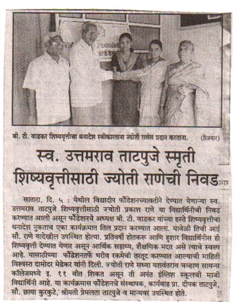 Late Shri Uttamrao Tatpuje Memorial Scholarship