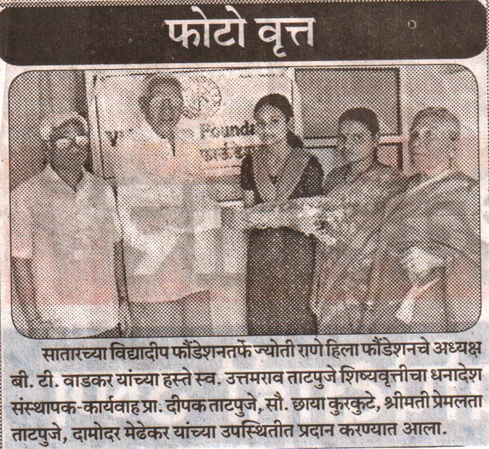 At the hands of: Hon. Shri B. T. Wadkar, President, VidyaDeep Foundation